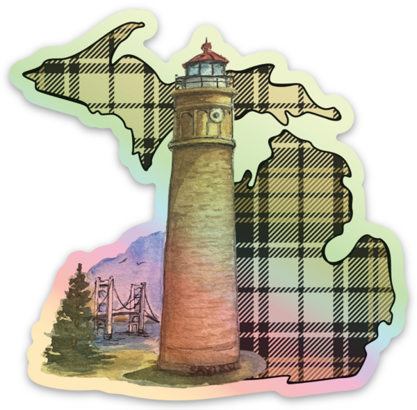 Big Mac Point - Lighthouse - Plaid - Badge - Waterproof Sticker (3" X 3")