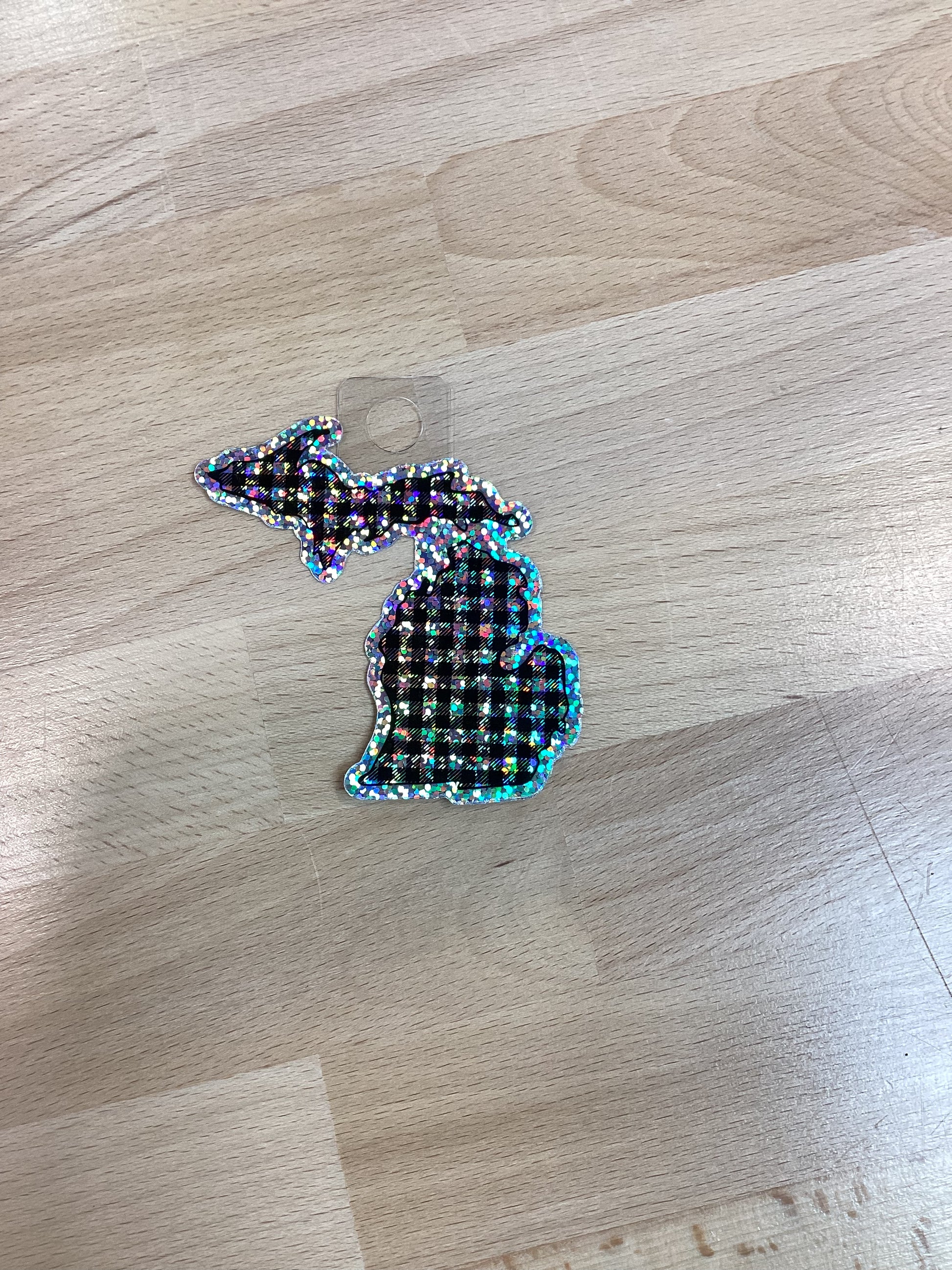 Plaid - Bw - Michigan - Holographic - Waterproof Sticker (3" X 3")