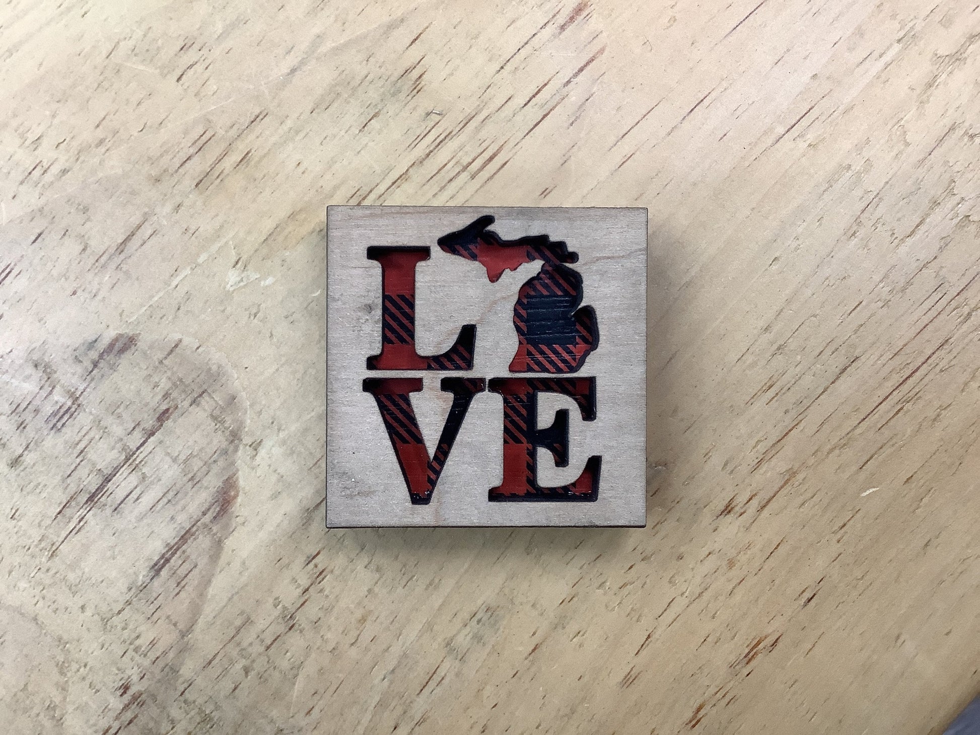 Love - Cutout - Red Gingham - Michigan - Wooden Magnet