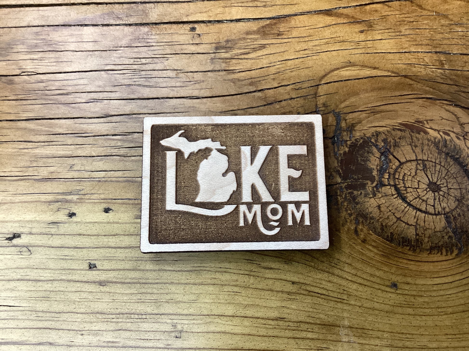 'Lake Mom' Rectangle - Word - Wooden Magnet