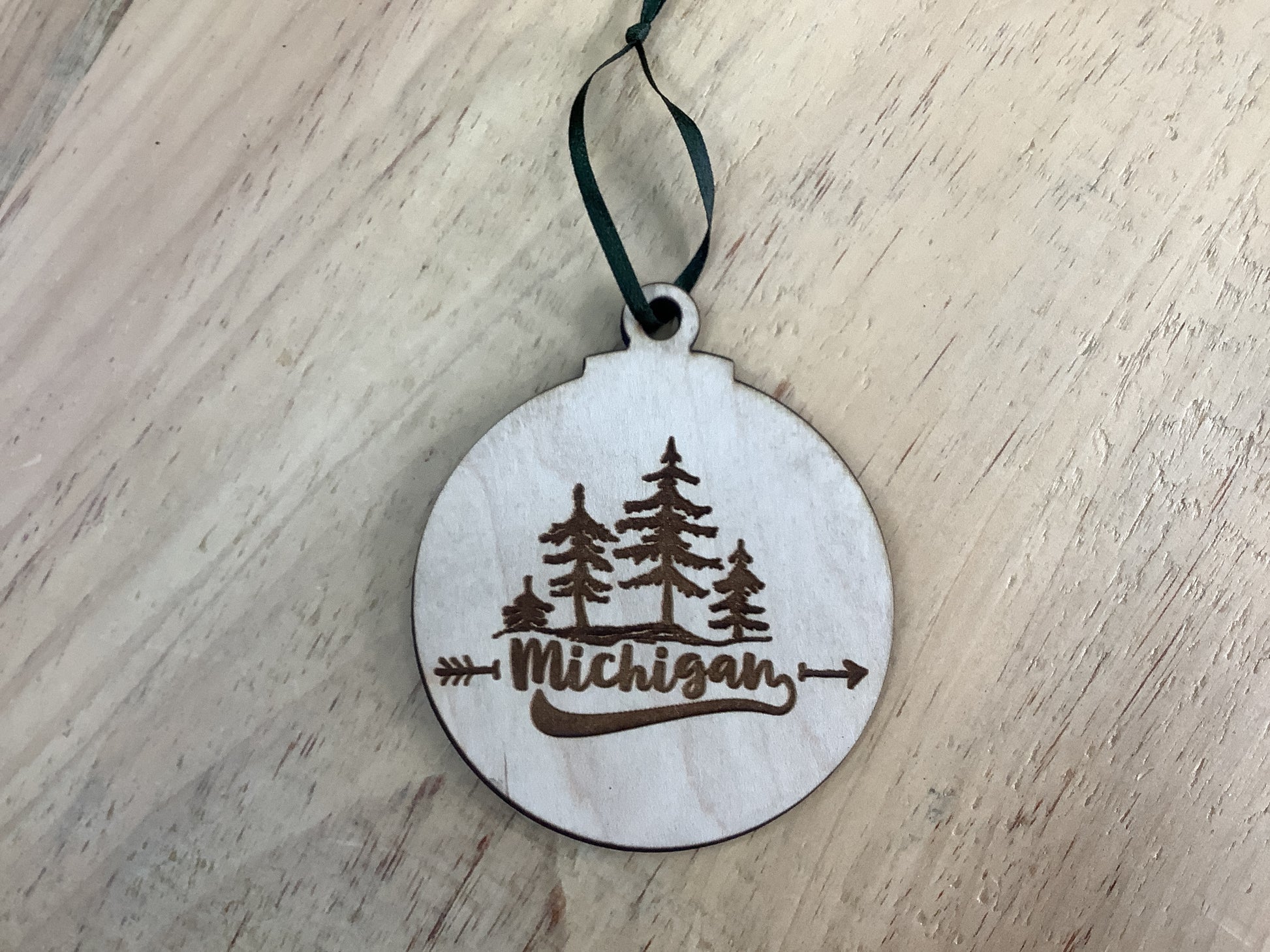 'Michigan' Forest - Bulb Shape - Wood Engraved Ornament