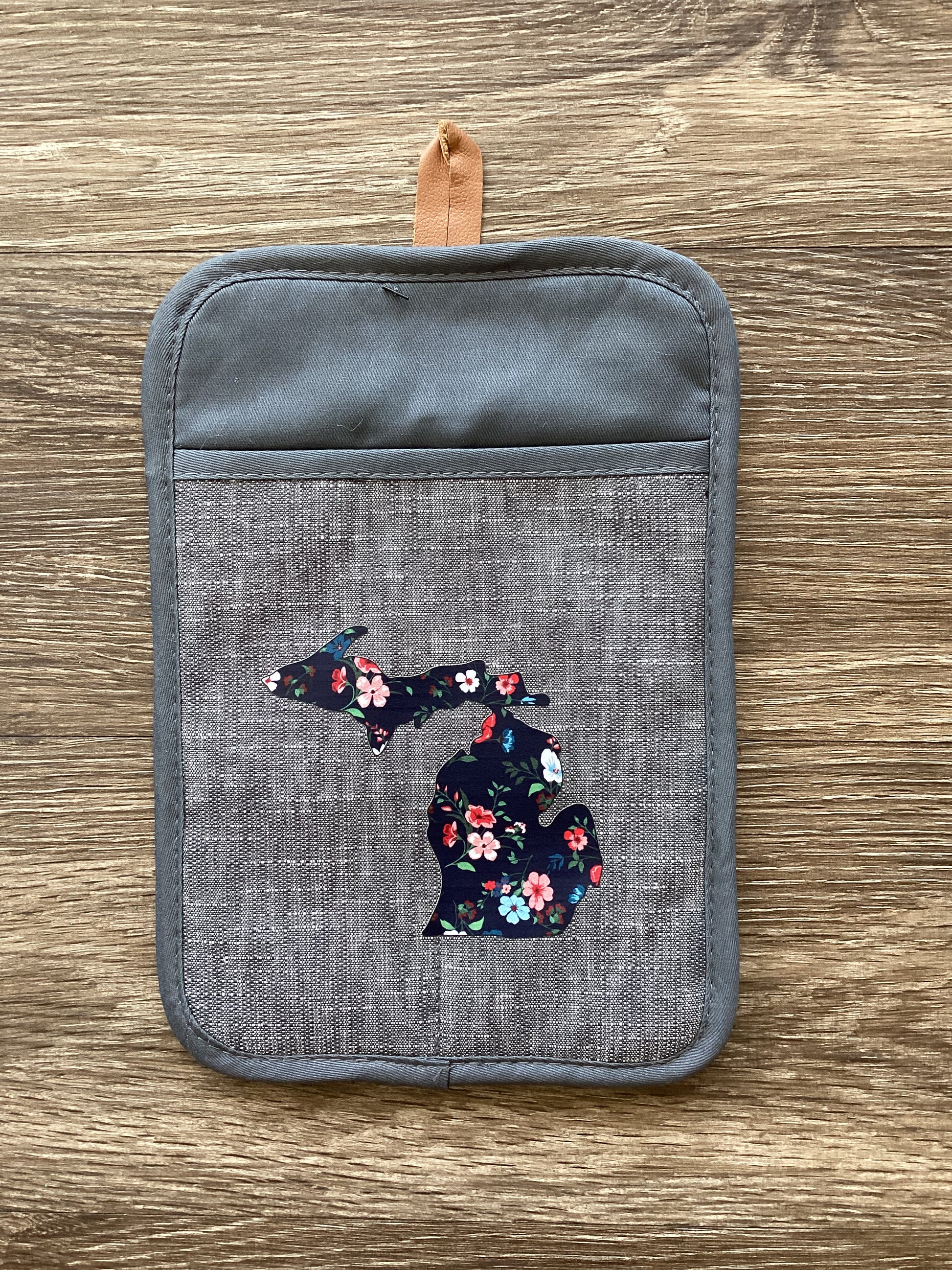 Branches Floral - Black - Michigan - Rectangle Oven Mitt