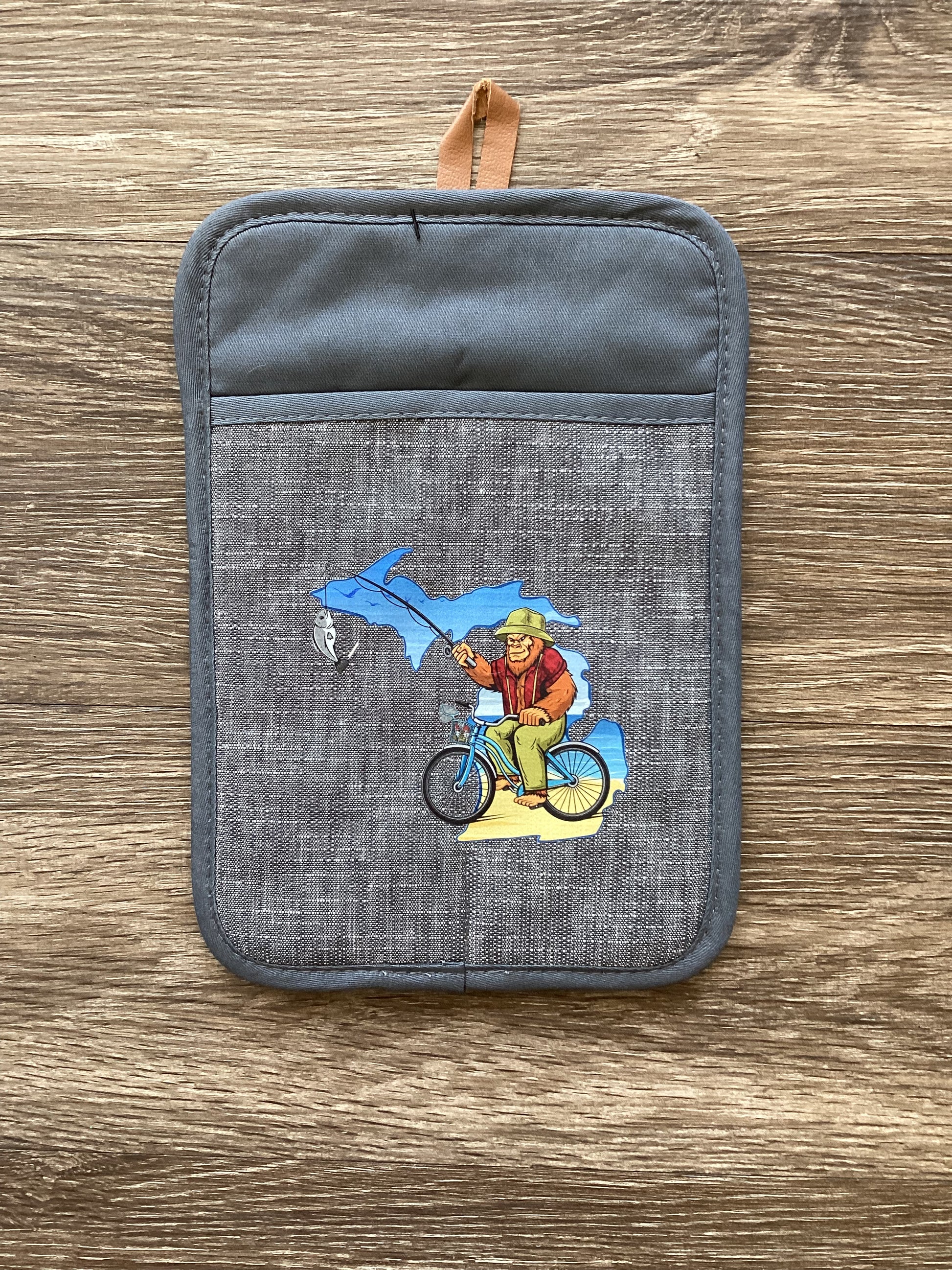 Sasquatch - Bike Fishing - Beach - Michigan - Rectangle Oven Mitt