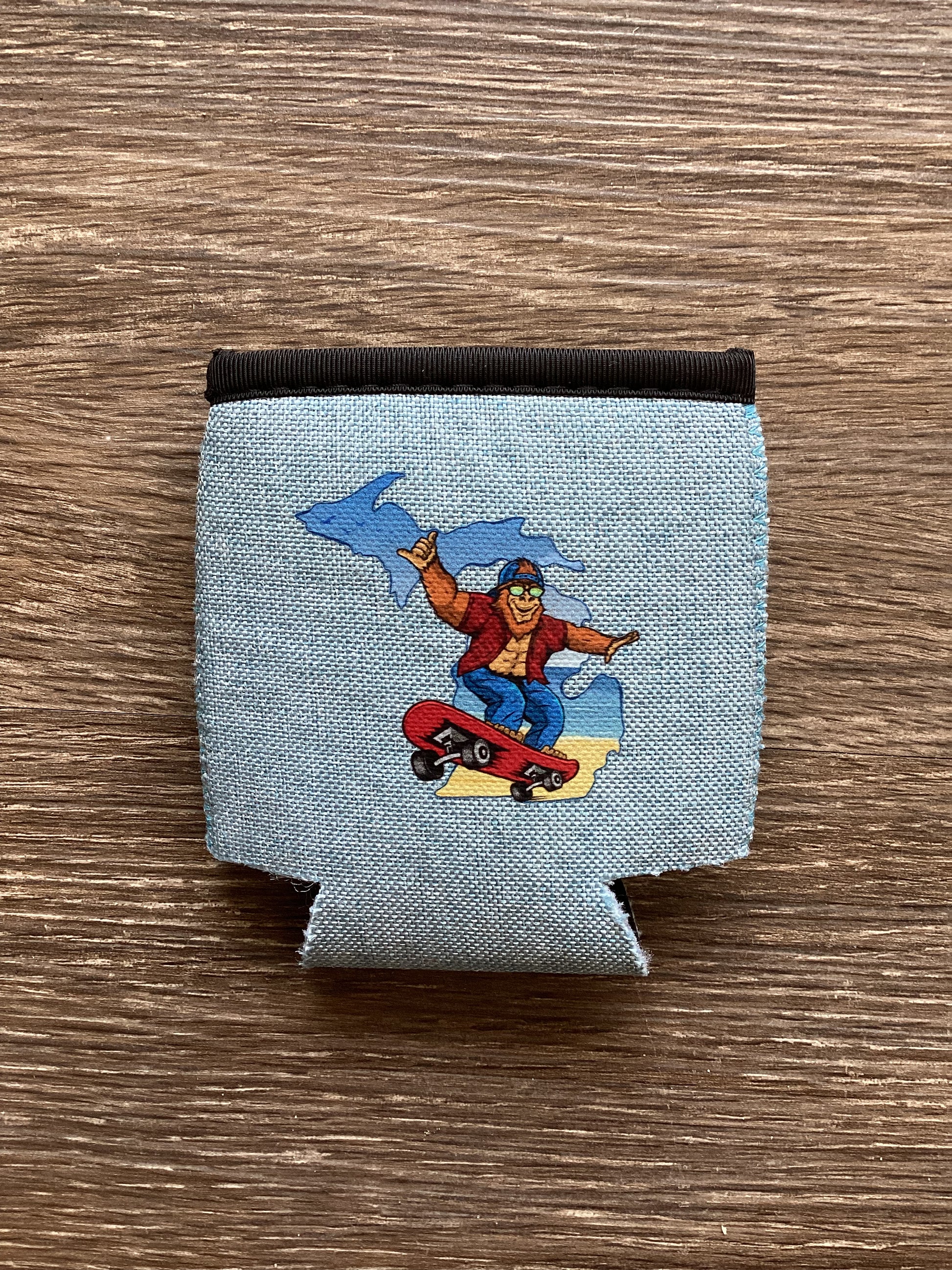 Sasquatch - Skateboarding - Beach - Michigan - Heather Blue Koozie
