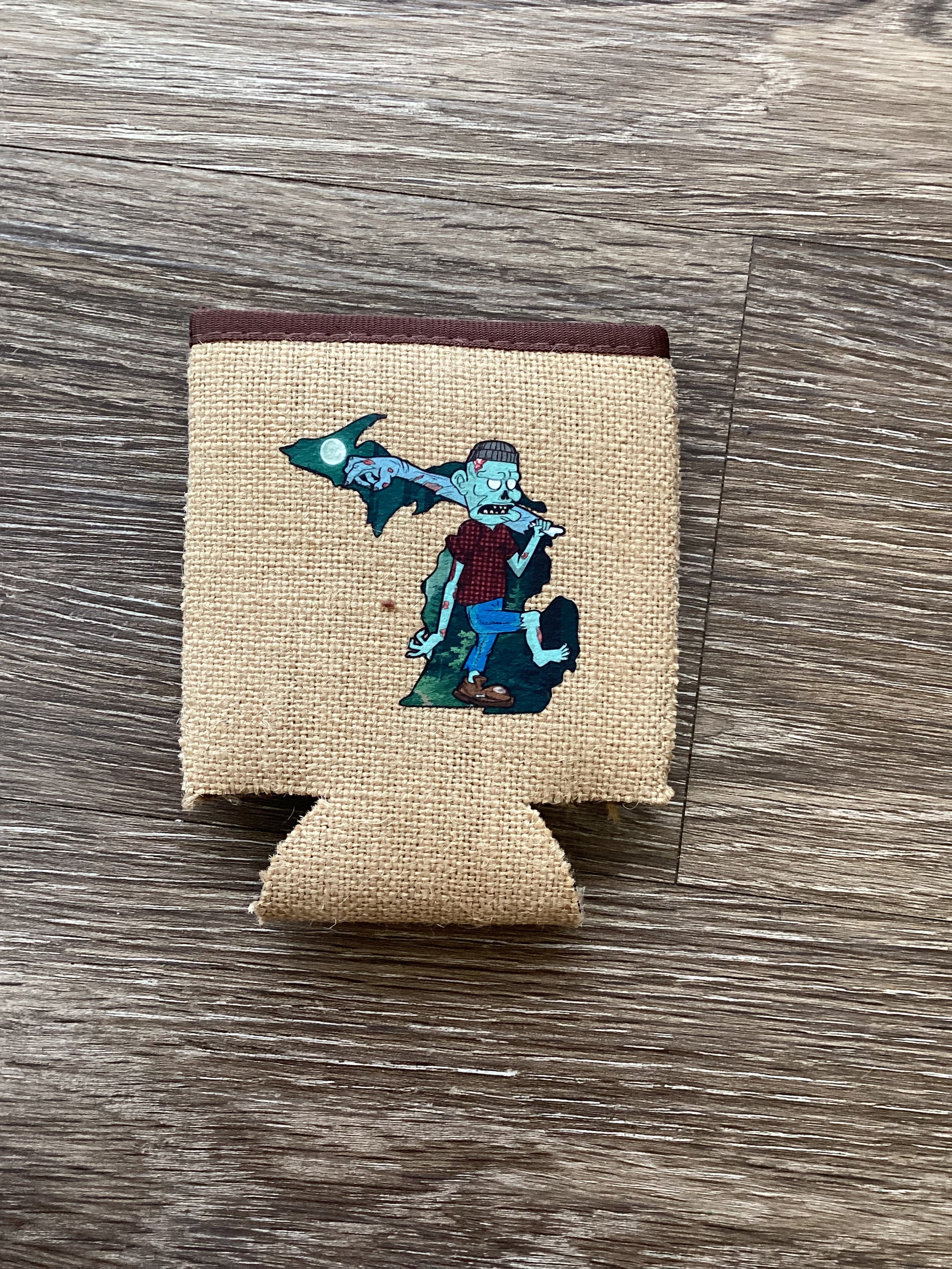 Night Forest - Michigan Zombie - Michigan - Burlap Koozie