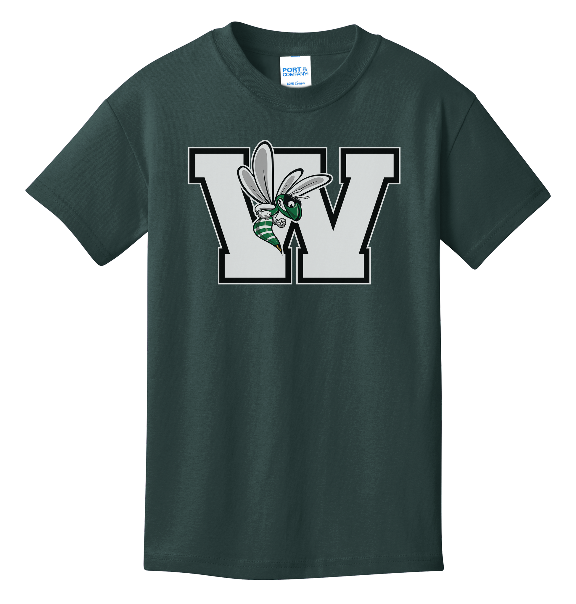 Williamston - White - W - Hornet Mascot - Port and Co - Heat Transferred - Youth T-Shirt